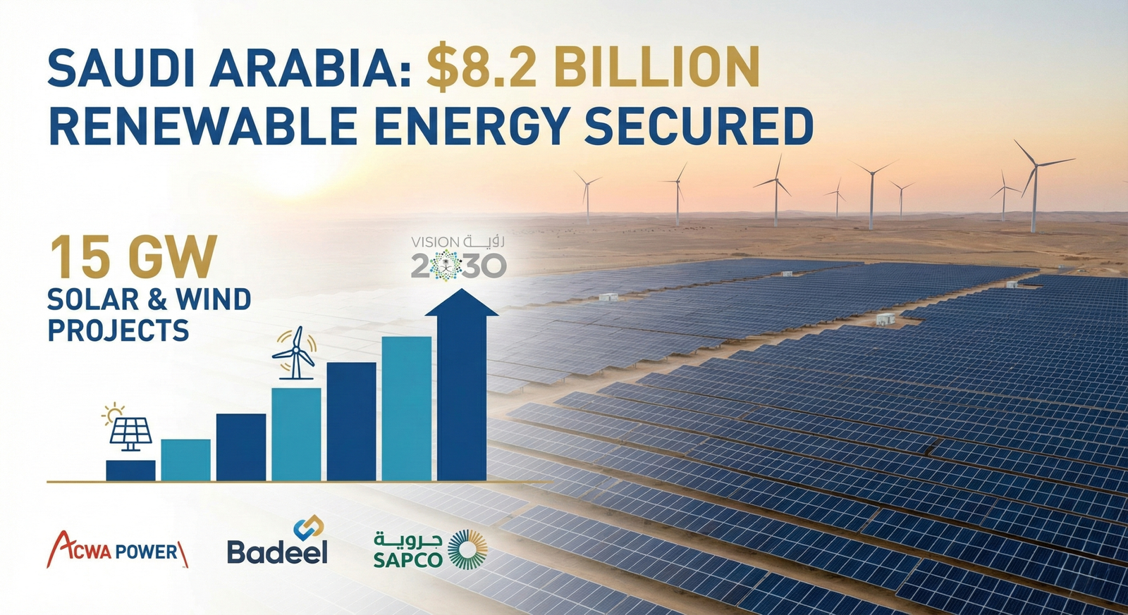 Saudi Arabia Secures $8.2 Billion to Finance 15 GW of Solar and Wind Projects: A New Benchmark for MENA Power